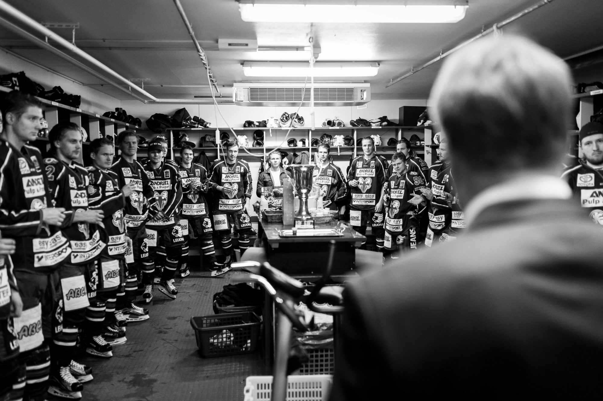 Juuso Forsström kävi noutamassa pokaalin ottelun loputtua.