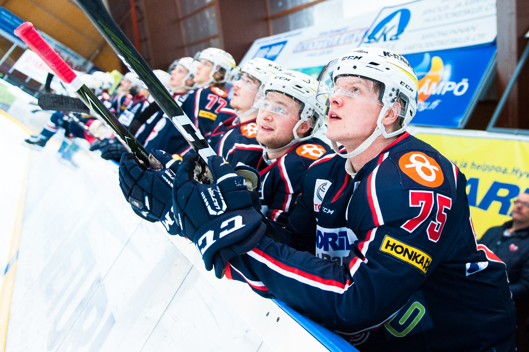 Rasmus Hämäläinen sivalsi kiekon häkkiin Hermestä vastaan. Tällä kaudella tehot 31+14.